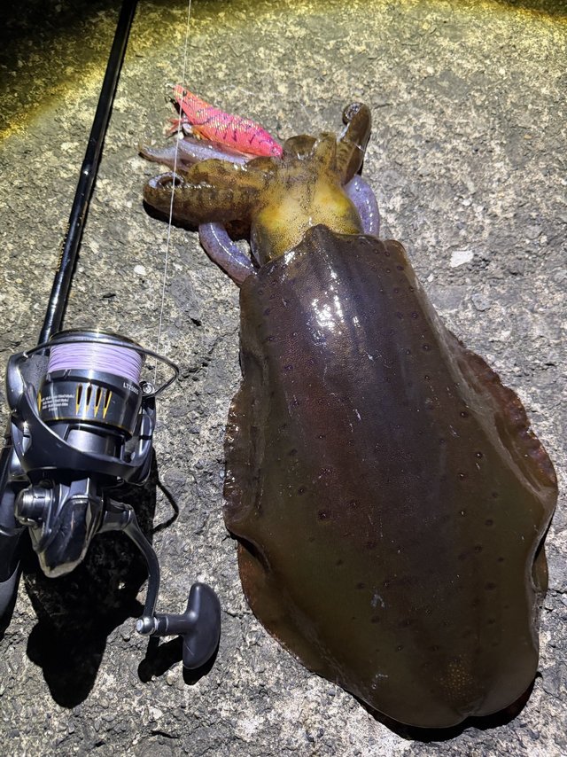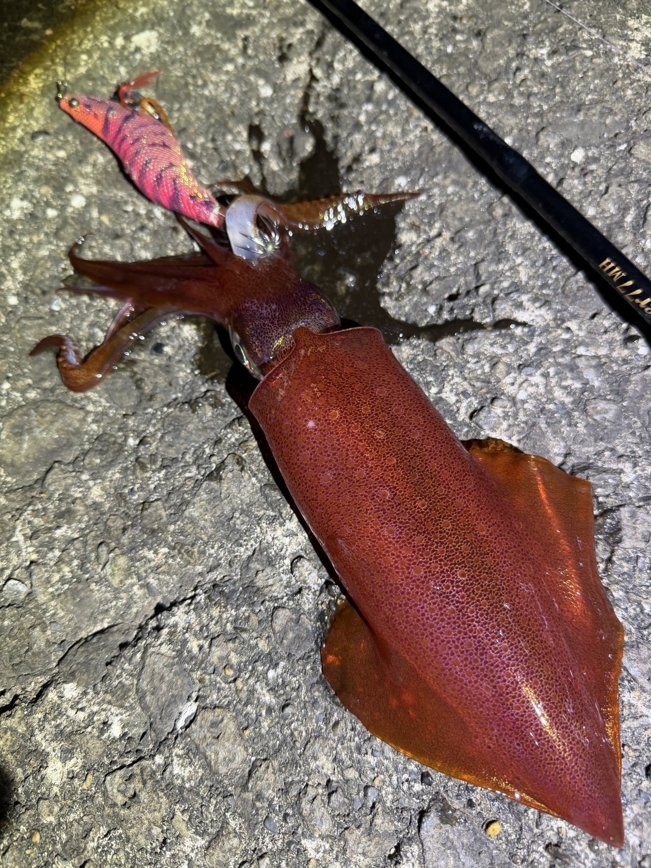 上げてみたらカッコいい柄をした1.3キロのオスのアオリイカでした^_^