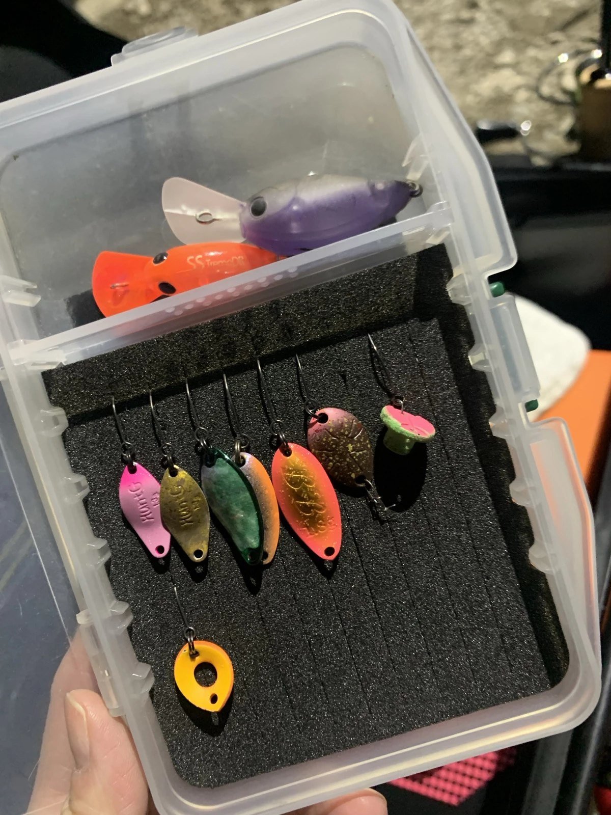 活性があまり高くなく基本的にはスローな展開になりました。水面直下のプラグ、スプーンが反応良かったです。