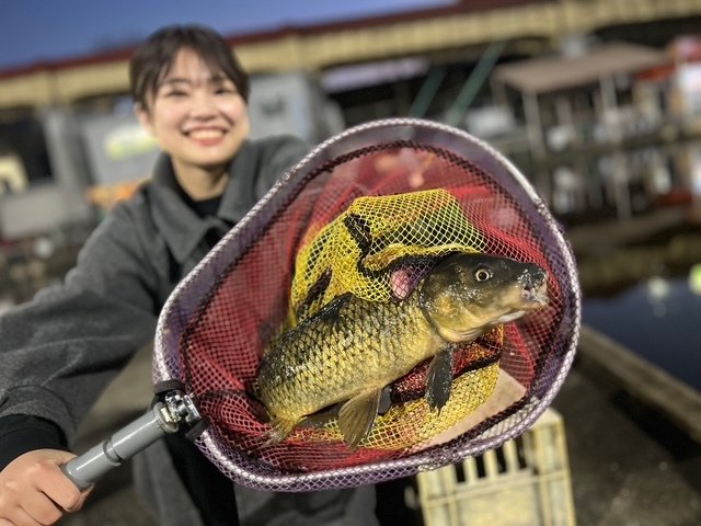 ということで、年末一匹(網抜けで実質ゼロ)だったコイ釣りリベンジ!!今回は前回よりさらに短い一時間一本勝負!!タナの調整、エサの水分量。。。先輩たちから教わった技術を身につけ、いざ!アタリの数が前回と段違いですね。合計4匹!彼女は1匹!次は一日券で再挑戦します!!