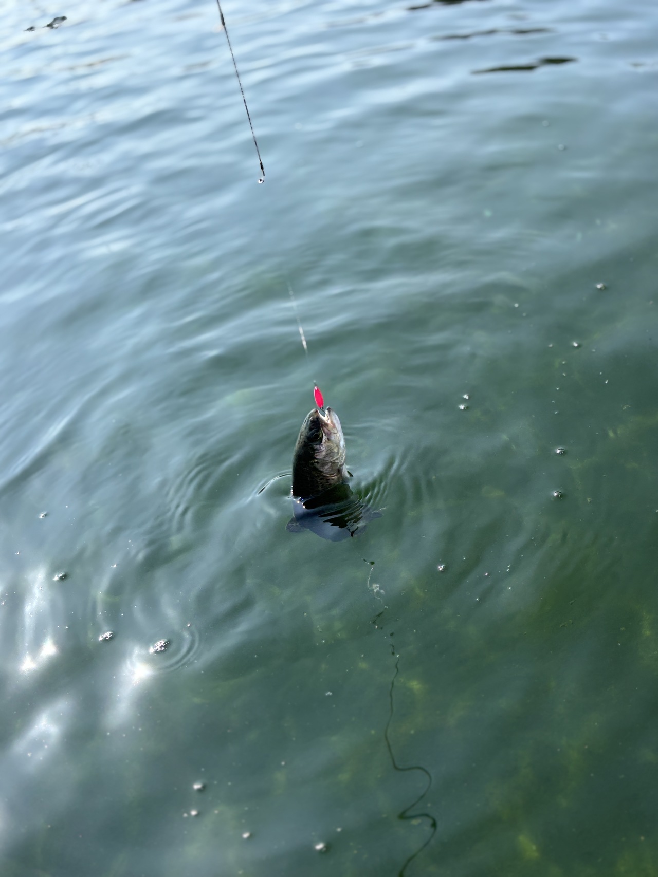 すると1投目から反応が!フッキングすると25cmぐらいのバスがヒット!