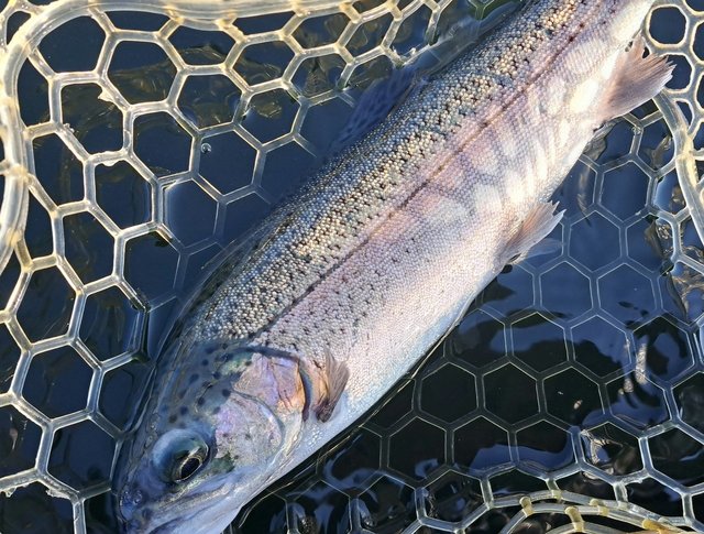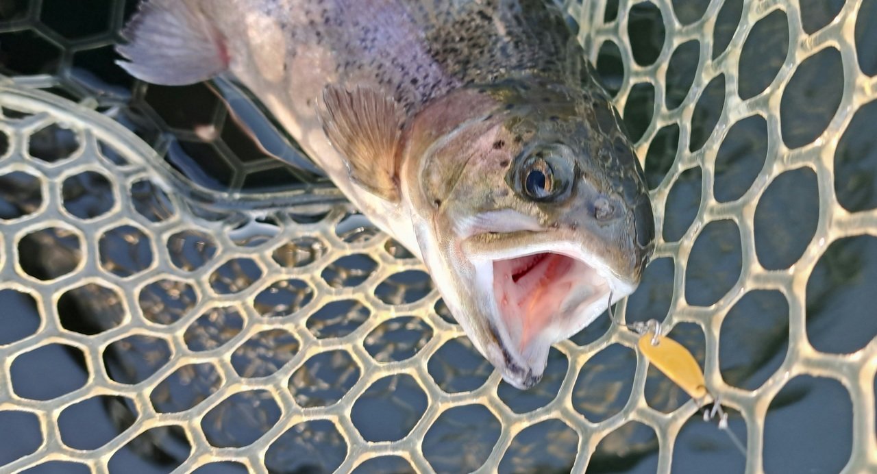 2月1日の釣行で楽しめたので、仕事終わりにTSURIBORI弁天閣さんへ再び遊びに行ってきました。前回のパターンを再現してボトムからリフトしてカーブフォールで釣る事が出来ました。別のパターンを発見しようとミノーやスプーンをローテーションしていきましたが発見出来ませんでした。終了間際にペレットタイムがはじまり今までのパターンが効かなくなり、対岸では大型のトラウトが釣れ、自分も釣りたいと思いましたが釣れず終了。まだまだ修行が足りないと感じました。弁天閣さんは近場で気軽に楽しめる釣り場なので、オススメです。