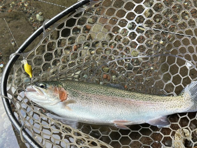 東久留米店吉田です。週末にある大会のプラに行かれるお客様に同行、久しぶりのFF中津川さんへ!水質はクリア。朝の水温は11℃台。参考になればと、それっぽいルアーに縛って釣りを開始。詳細は割愛させていただきますが、釣り座を移動しながら自分の練習も出来て楽しめました。今はニジマスの種類が普段と違うものも入っていて、背中が青く斑点が少ない銀ピカの種類がとても反応よく高活性でした。ルアーのカラー選択もちょっと変わってくると思います。当日は有名アングラーの取材も入っていて色々お話しが聞けて良かったです。