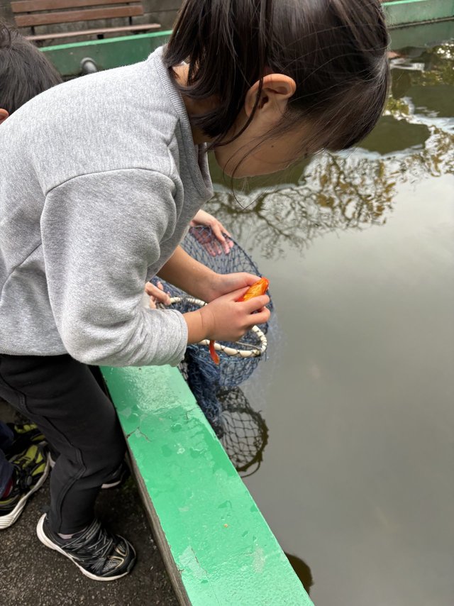 長男は私が釣った2匹を網で眺めていたら