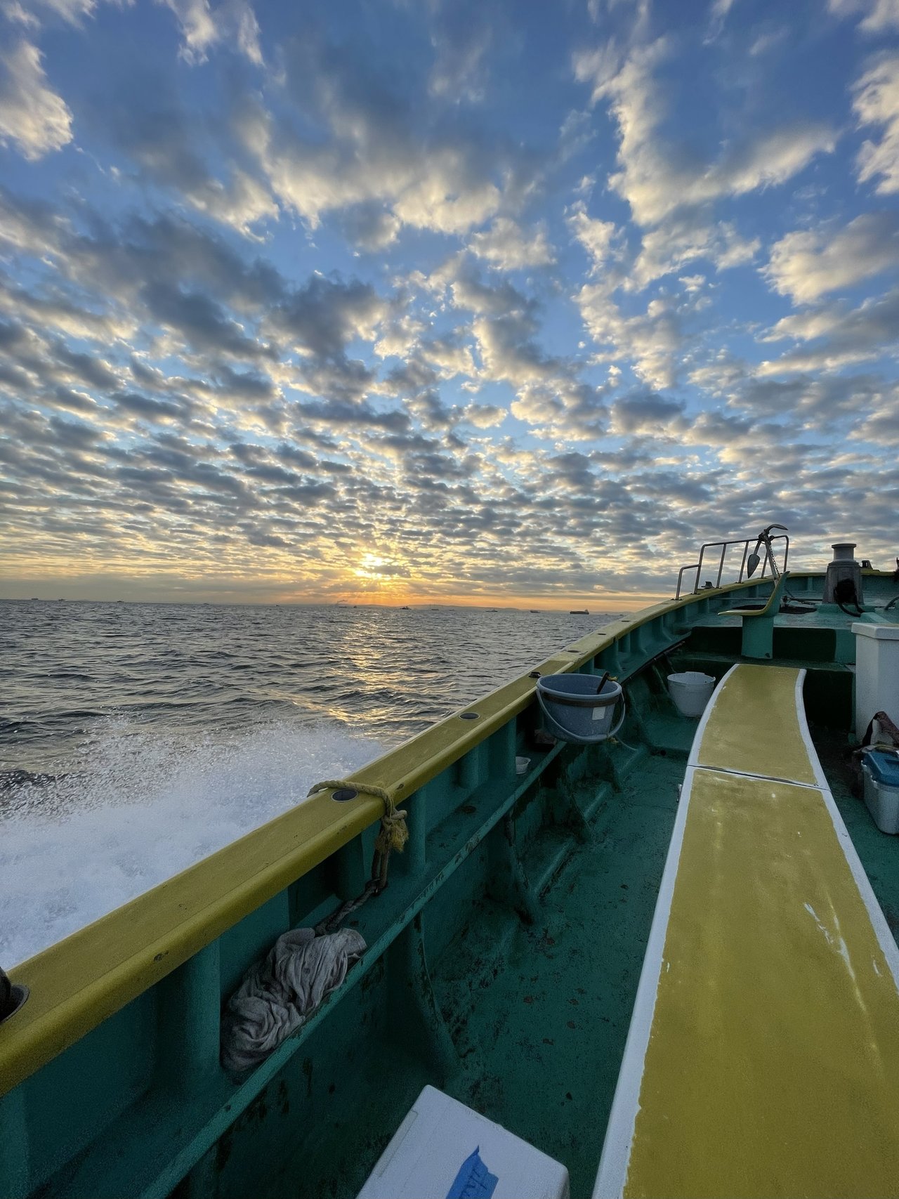 ボッチ釣行2部は本命ティップランです!1部での不甲斐ない結果を挽回するべく午後は気合入っております!と言っても人生2回目のティップランそして初めての船宿…。不安でしかないですがいざ実釣!こんな感じかなと見よう見まねでやっていますが、まぁ釣れません!そんな中、私の左の方はどんどん釣っています!今度は右の方も釣ってます!なんと両隣同時ヒットも!使用されているエギは同じものですが私だけ釣れません!こんな調子が開始3時間近くまで続きます!心は完全に折れ夕日を眺めていましたが、奇跡的に私に釣れました!その後はちょっとコツをつかみラッシュ開始!イカ墨を顔面に食らおうが笑顔ではしゃぐ!防寒ウエァーは黒く染まりましたがキロアップも混じり満足のいく釣行!ヒットエギは日がある時はブルー系のエギ、日が落ちてからはパープル系が良かったです!やはり基本は大事!しっかり底を取りシャクった後しっかりエギを止める事!勉強になりました!