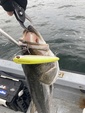 タモ入れを手伝って自分も一投、、、グン、何と自分も一投目で一匹目をゲット!