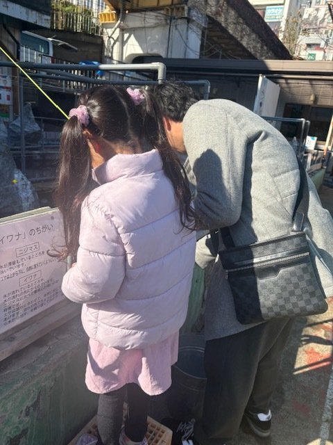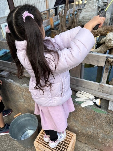 その後もパターンが掴めないままバラシたり、1匹だけ食べて帰ろうかと思った矢先に娘がエサをつけてみたいと言い出したのでやらせてみる事に。