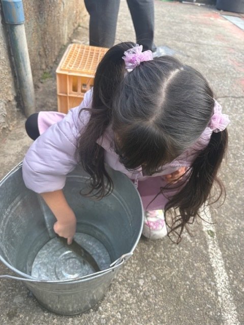 つけやすいコーンをつけて一緒に竿を持つと、なんと1投目で釣れましたが娘はビックリしたのか猛ダッシュで逃げていきました。