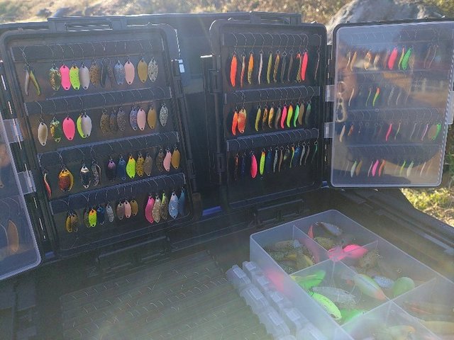 最近はスプーンで釣る事が多い私としては、この二つの組み合わせが非常に良かったです。スプーンワレットだと開け閉めが面倒ですが、これだと一目瞭然で交換も楽々でした。