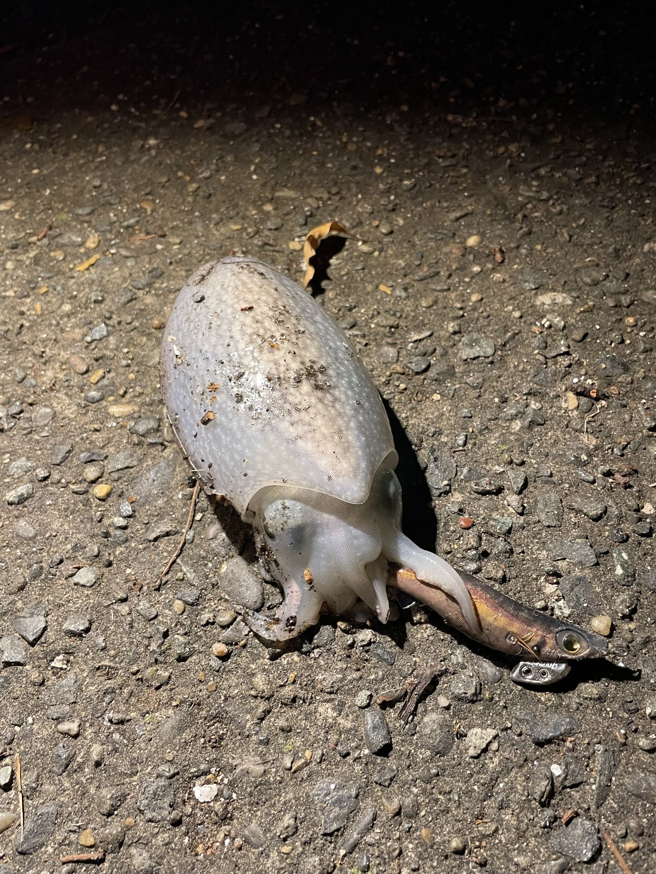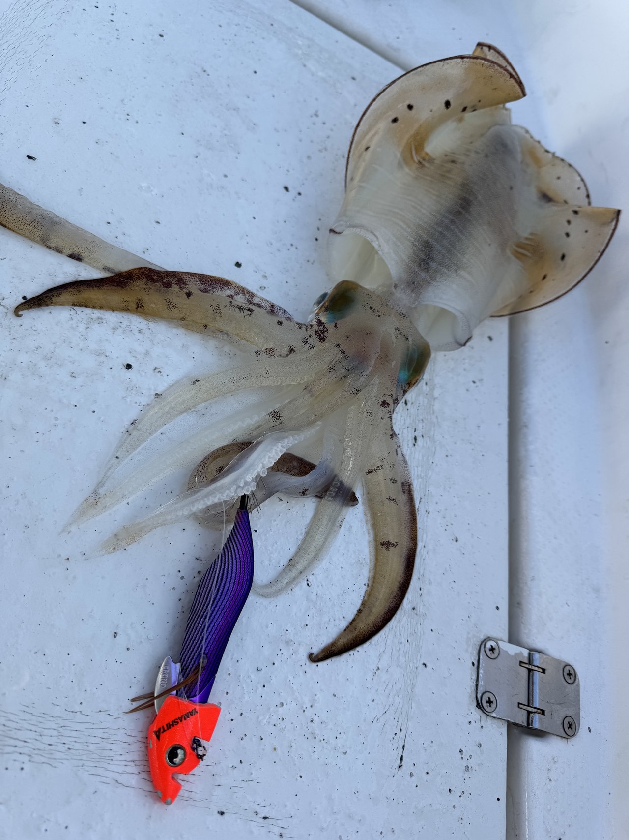 移動先でもアオリイカを狙いますが、最初に釣れたのはシリヤケイカ。