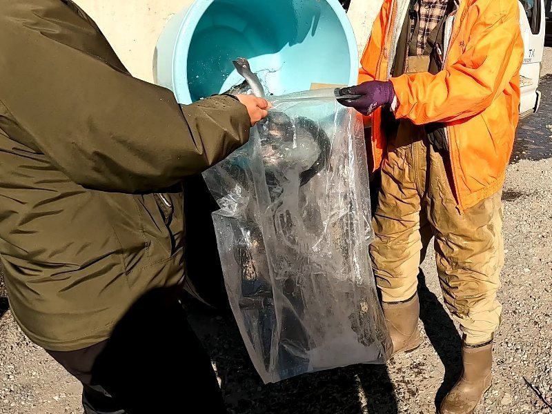 休憩をはさみながら無事にエリア全体に放流完了。元気に泳ぎ回る魚に一安心です。