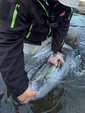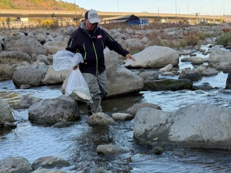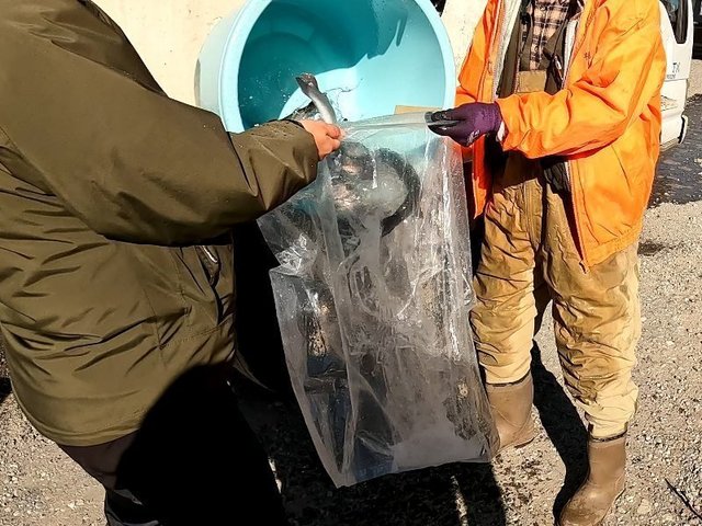 前回と同じく、魚受け取る→放流場所の指示受ける→土手降りて川へ→放流→土手のぼる、の繰り返し。なかなかのハードワークです(笑)しかしこの手法のおかげで魚の密度の偏りが少なくなり、エリア全体で楽しめるようになります。