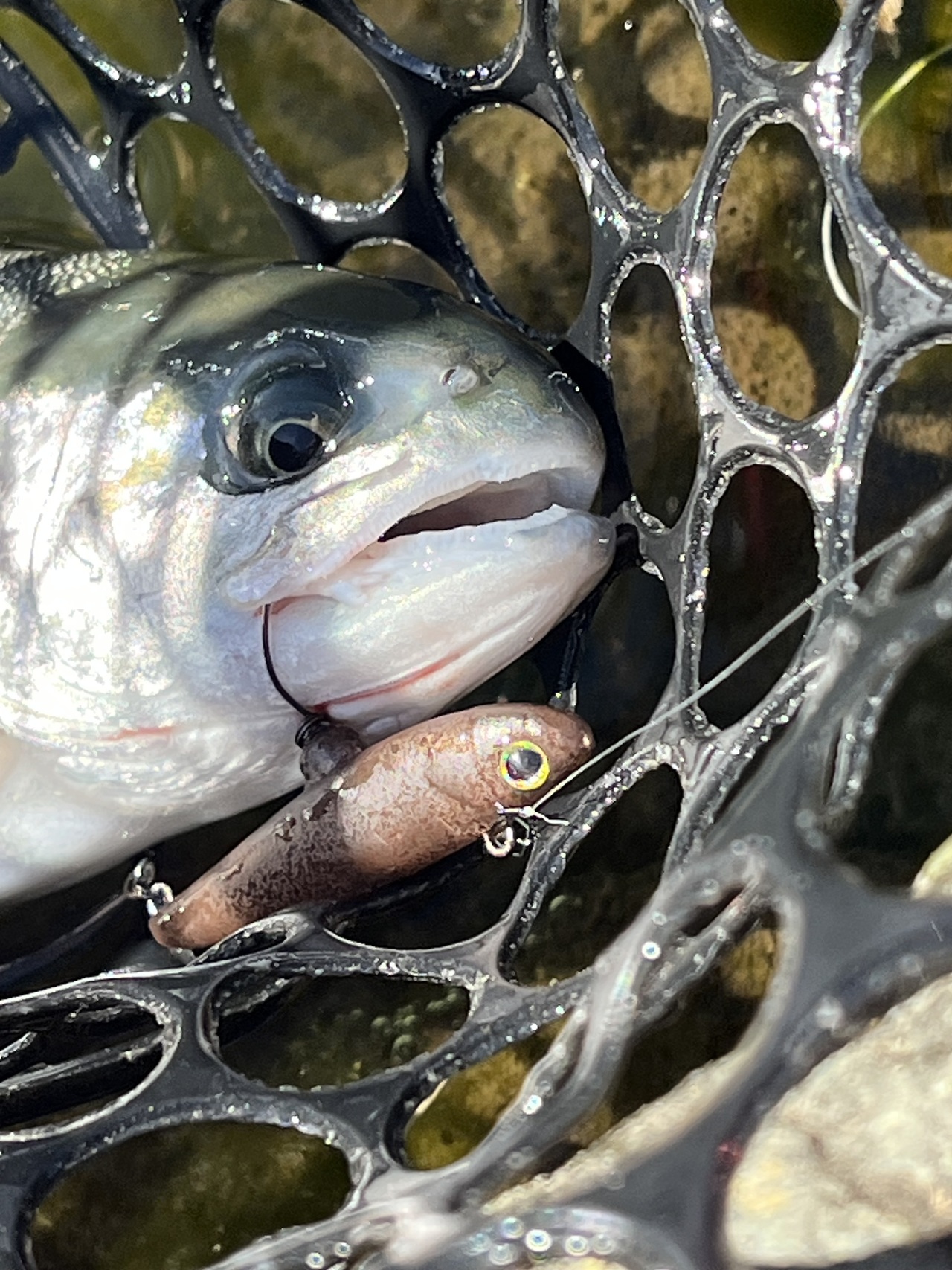初の東山湖で、いつもリバスポばっか行ってる自分のルアーでは中々苦戦しました。
