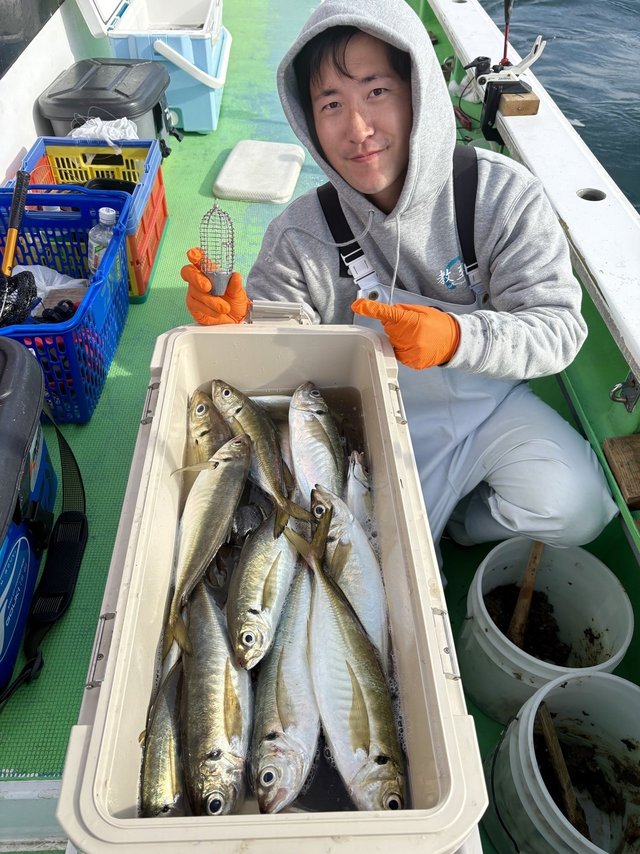 走水の美味しいブランドアジを60号・80号のライトビシで狙う、教至丸さんのLTアジ船です♪品川店の佐藤君にエスコートしてもらって初めてのチャレンジ♪