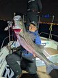 観音崎沖からスタート。指示棚80mの所でしたがなかなか厳しくポツポツと拾っていく感じ。次に指示棚150mの所へ行き、細かく誘い上げをして、そこで2点掛けを連発し数をのばす事が出来ました!