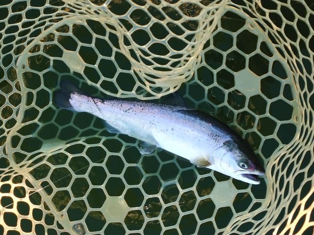 その後はアタリが遠のいたので、シンキングに変えて底付近を探ったりして、ニジマス、サクラマス、イワナ等をポツポツと釣りました。アタリがあるときは続けてありますが、アタリが止まると全く反応しない時間もありました。
