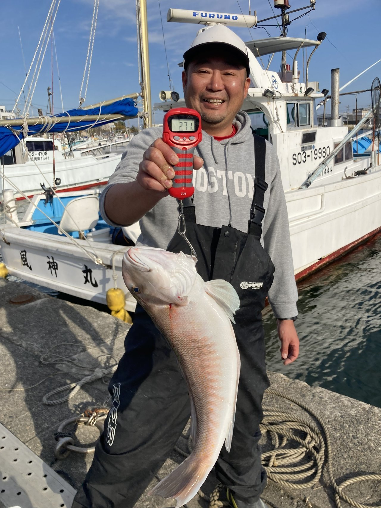 最近はハマっているシロアマダイを釣りに焼津・風神丸さんへ行ってきました。船長曰く、ここのところ潮が流れないのとだんだん魚の数が減ってきておりアタリが減ってきているとのこと。朝一は大物のポイントに行ってくれ、開始早々良型のシロアマダイをGETし坊主を逃れ一安心。今日こそ同行の高橋君に勝てるかと思いきや、その後高橋君にビックフィッシュがHIT。丁寧なやり取りで2.7キロのシロアマダイを見事にGETしました。その後も良型を連発し、一気に三匹のシロアマダイをGET。その後は潮が止まってしまいポツポツアタリになってしまいました。場所を移動して中型サイズを二匹釣るも、魚の内容では圧倒的敗北。船長も置き竿で竿を出していて2.0キロ&1.5キロサイズをGETしていましたよ。また50