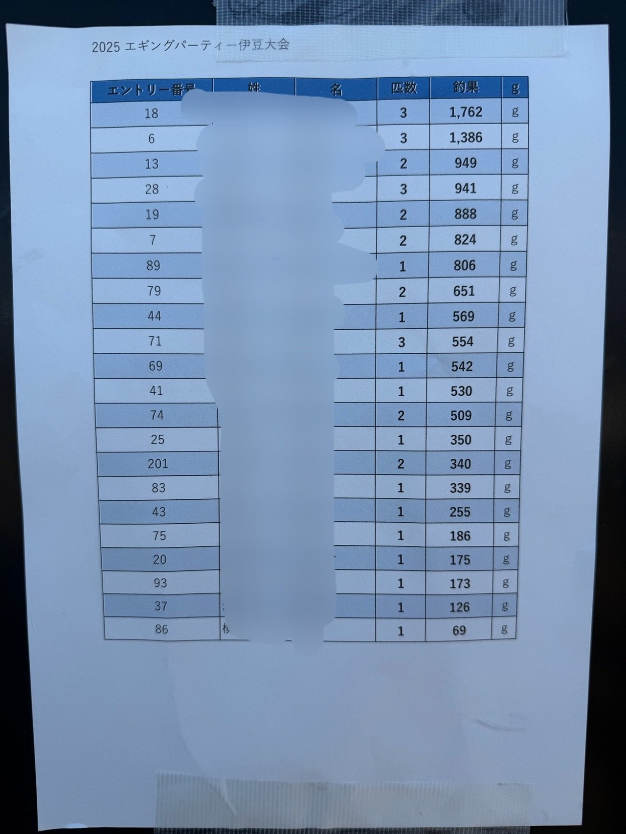 優勝者は3杯で1762gのスコアの方でした!お見事でした!