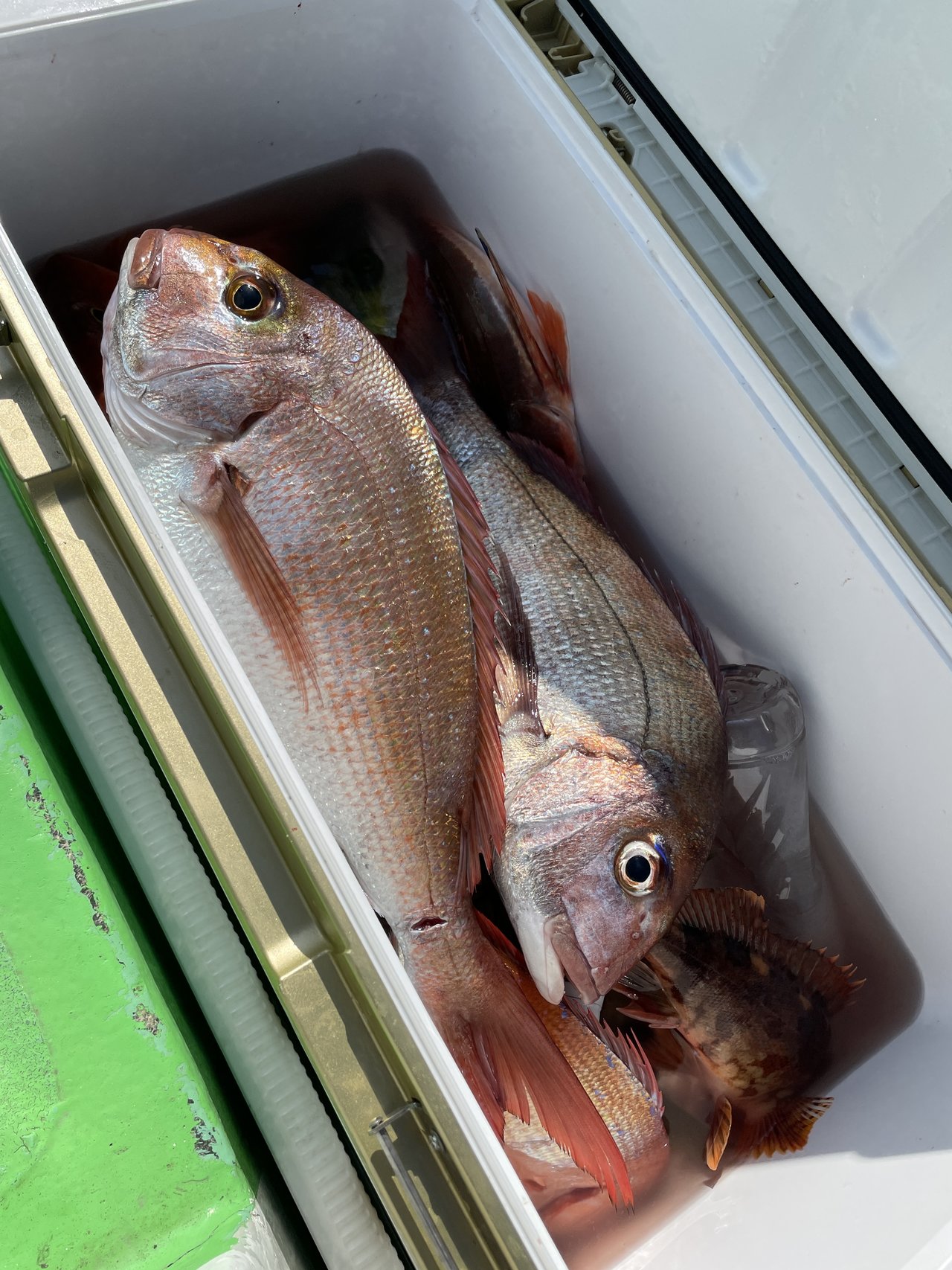 その後もそのやり方で、やっていくと結果的にマダイが5匹、ホウボウ2匹、カサゴ2匹。