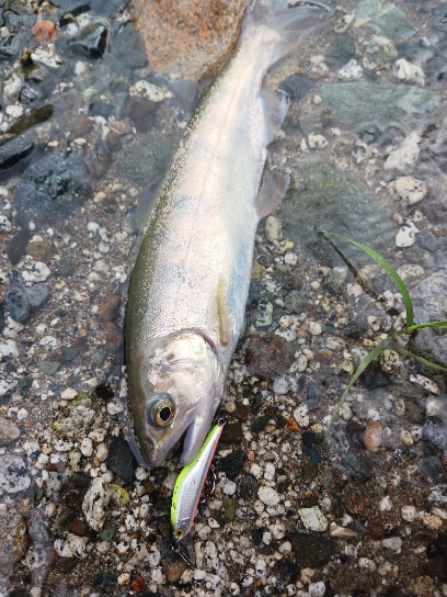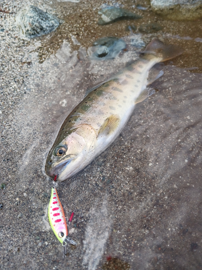 途中派手さで使用したディープクラピーCRカラーで連発したりと少しパターンが変わりつつも爆風のエリアトラウトを楽しんできました。