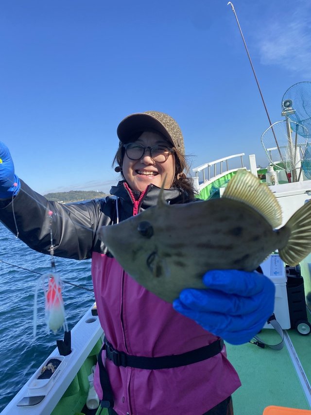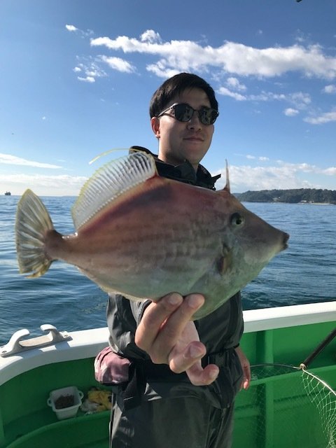 鴨居沖の魚は良型多く混じり、肝ぱんぱんの美味しそうなカワハギでした♪