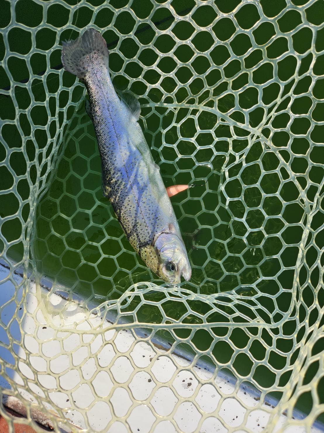 …と思いきや、ナイスサイズのニジマス。こーんなパターンで終始し、ついに富士の介クンは見られませんでしたが、気持ち的には全然アリな釣りでした。