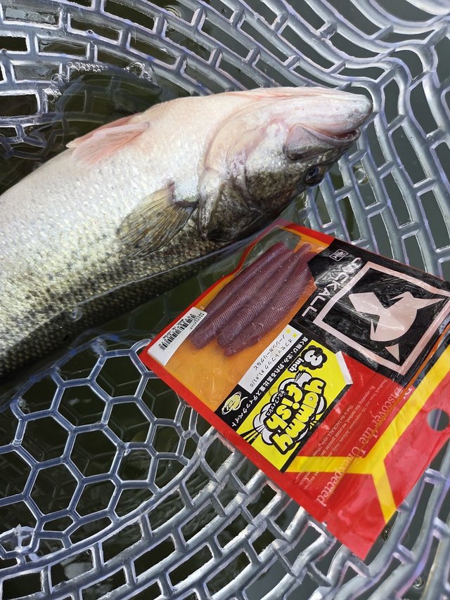いつもの高比重ワームは釣れるのですがいまいちノリが悪く、渋いタイミングで吸い込みやすいスモラバは毛を嫌がっている?様子で、着地として中比重なノーシンカーでシェード、杭を釣りましたが残念ながら目標の10匹には届かずでした。