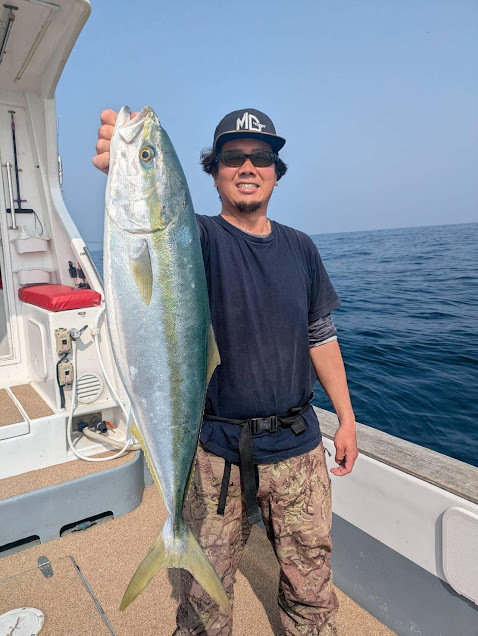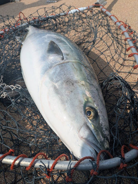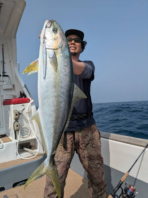 魚探の反応は良い感じながらトップに魚が出てこないので、ジギングへシフトするとヒット!レギュラーサイズながら何とかヒラマサをキャッチ。そしてラストポイント。キャストでやっとバイトがありましたがヤズ。やっと魚が浮いてきた?と思いましたが後が続かないのでジギングへシフト。すると水深60mくらいで50mほどシャクリ上げたところでヒット。ヒットしたことを気づいてないのか何の抵抗もないまま上がってきたのは12キロのブリ。渋い中、今回はこの魚に満足して終了。魚はいるけど喰わせきらない春の洗礼を受けた釣行でした。
