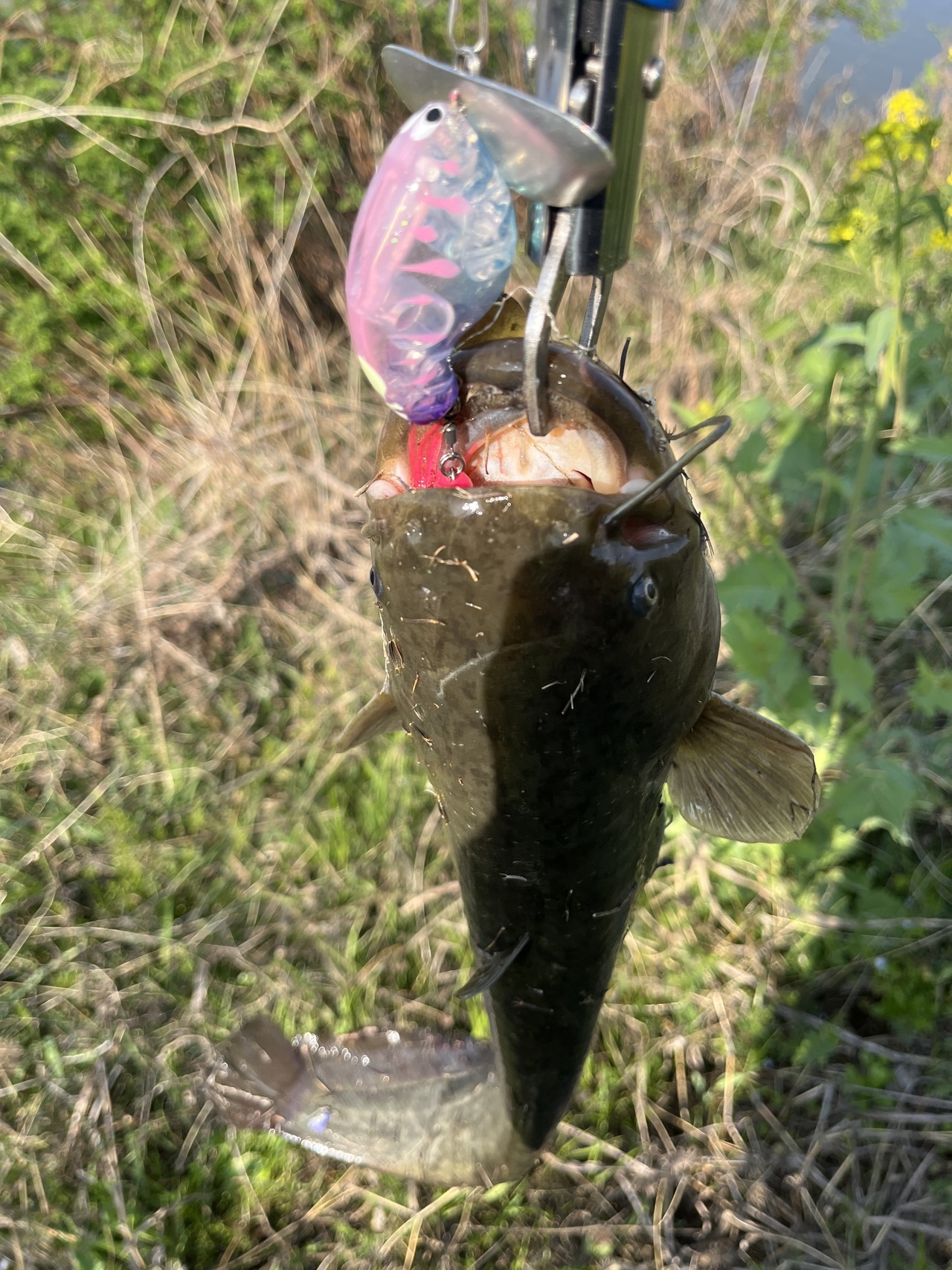 今期初の桜を見ながらのナマズ散歩へ。お腹を空かせていたのか、なんと一投目から水面炸裂!元気なナマちゃんに遊んでもらいました。桜もナマズもいよいよ開幕ですね!