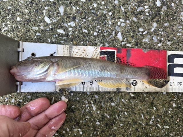 同じくハゼを狙っている地元らしき若い釣り人より声をかけられ色々と教えていただきました。大人しく教えられた通りにしてみると直ぐに良型が釣れだし、念願の20㎝越えも釣れました。地元の釣り人の話は素直に聞くもんですね。