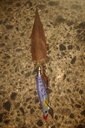 仕掛は取り合えずの30号喰わせ仕掛でスタート。開始から1時間程して横の方が残念ながらバラシされ、隣の私が仕掛けをリフトしていると直後にアタリがカツカツと出る。(多分同じフグ)下しきって送り込みアワセるとズシリと乗ったので巻き上げましたが途中で外れてしまう。ワイヤーカットウを付けとけば取れたかもしれませんが、カットウの違和感で喰わせ仕掛けの様には食べなかったかもしれません。