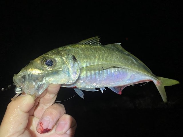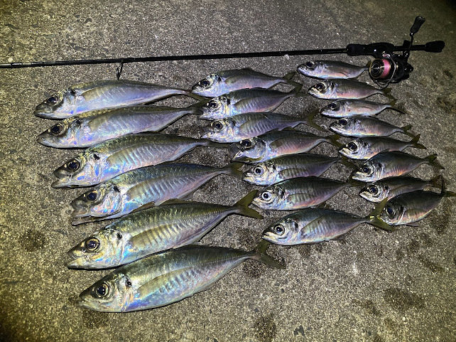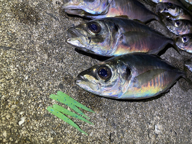 アジは1投1匹ペースで連発。カウント5~10くらいでレンジに入れてからのスローリトリーブで爆釣でした。