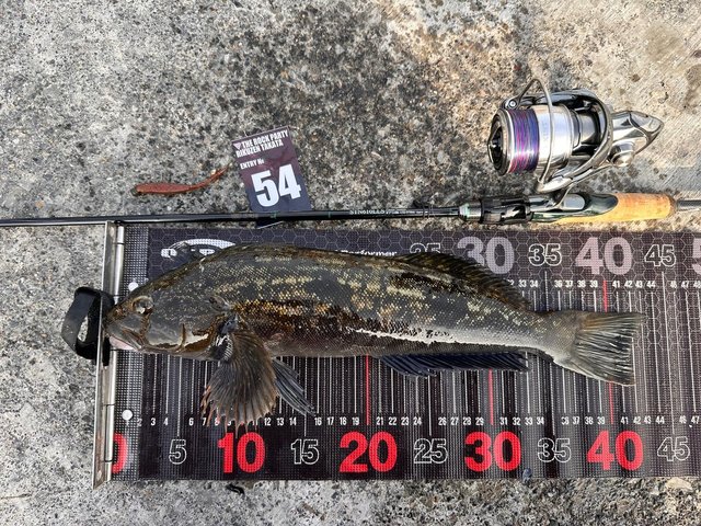 約70名が集まり、大賑わいな大会となりましたが釣果の程は!?先ずは遠投をメインに陸前高田の高~い堤防へエントリー。約2時間程やるも反応がなく移動。大船渡の沖のピンを狙うも不発、、、。これだけ沖に魚がいないんであれば、、、。釣りをガラリと変えて、港内の船下を丁寧に。『ドライブスティック3”ODGボトムマジック+1.3gジグヘッド』にてボトムから5~10cmをレンジキープしながらミドスト。僅か2投目で答えが!!ミドスト中にヌッとティップが入りフッキング!!ロープや牡蠣殻を交わしながら無事にネットイン!43cmのアフター回復のアイナメをキャッチし、その後もランガンするも一匹のみでストップフィッシング~。結果は10位でした!これにて大きな大会はしばらく無いので色々な釣りに行って楽しみたいと思いますッ!!