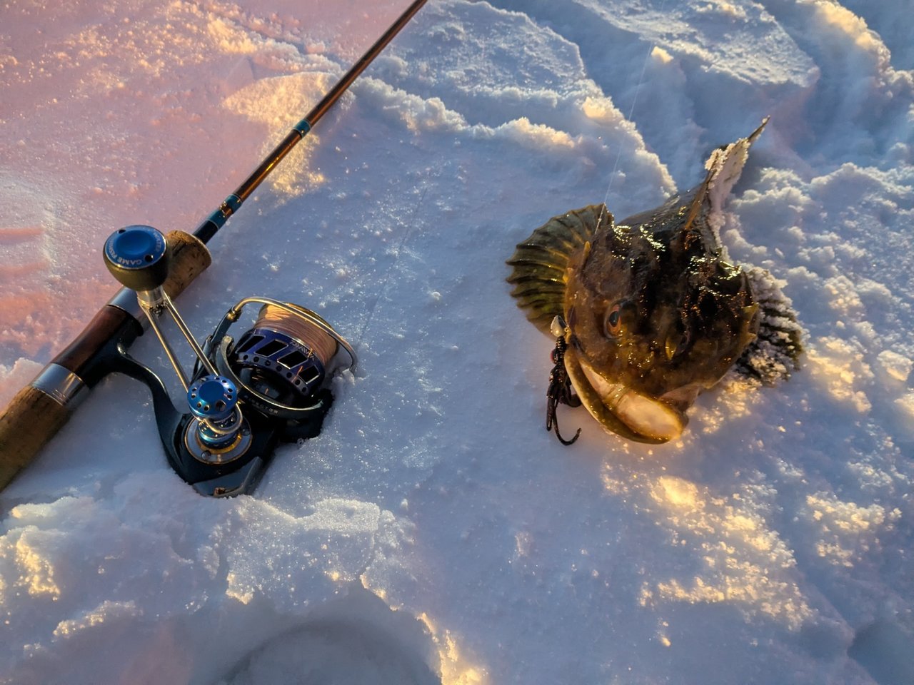 極寒の知床羅臼へサクラマス(あわよくばキングサーモン)ジギングに行きました。初日移動日夕食後、寒さを体感するためにとりあえず適当なタックルの組み合わせで羅臼漁港へ。移動中寄り道した中標津の釣具店で何か釣れるか聞いたところ、この時期羅臼漁港で釣りする人いないからわからないとの事でしたが、以前春・夏に漁港でガヤが手堅く釣れたワームを明暗に落とし込むとすぐにガヤが釣れました。その後も落とす度にアタリがあり良型のシマソイやカジカも交じり22時撤収までずっと釣れ続けました。絶対期待を裏切らない知床のナイトガヤ釣りは旅行のついでにもおすすめです