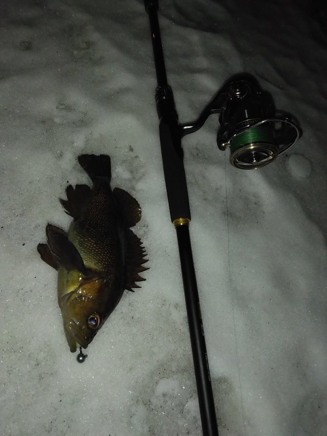 極寒で水温も低く、夏に比べると魚の活性も低いみたいで反応はボトムのみ。