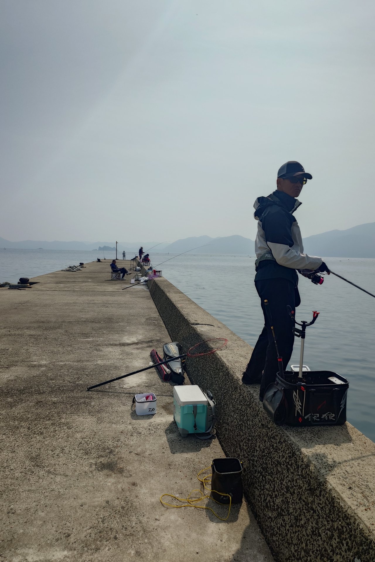 凪で小潮で潮もほとんど動いておらず釣れるか不安でしたが、チヌ釣り名人の所崎さんを真似してピンポイントでエサを底に溜め、仕掛けをゆーっくり這わせます。喰いが浅いよと情報共有してもらっていたので、棒ウキが「ぬーー…」とゆっくり沈んでいっても我慢し少し待って合わせるとずっしりと重みが!先調子の銀狼王牙Fでフッキングもキマり、竿2本分ほどの深場からでも安定して浮かせることができました。本命を釣ることができて一安心(*'ω'*)グレとチヌで釣り方そんなに変わるの?と思っていましたが全然違い、グレ釣りを「動」とするならチヌ釣りは「静」という印象を受けました。次は磯チヌに行くので、今日の経験を活かしサイズアップを狙いたいです!!