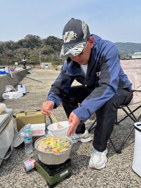 釣り場は初めての場所で横並びに皆で釣り座を選んで実釣スタート。横の名人は基本に忠実で底までの棚取りで私は適当な場所へウキ止めをセットして仕掛けを投入しながら棚は上から下へ探りながら仕掛けを誘導していると本日のファーストフィッシュをいただき本命のチヌ様ゲット。その後は指導役?調理役?になりながら昼のご飯は皆で寄せ鍋を熱々でいただきましたね♪チヌ釣りも楽しいですよ♪