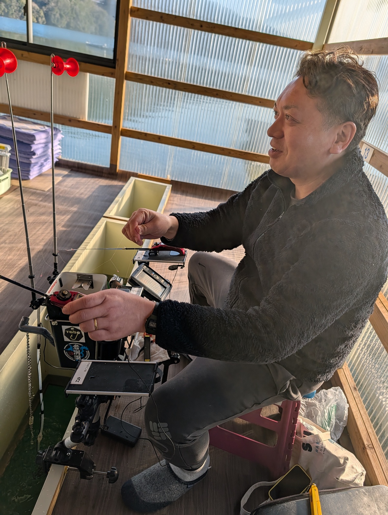 隣で釣りをしますが今日は2Dの魚探1台のみです