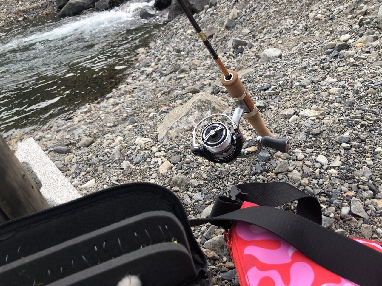 せっせと竿に糸を通して準備するもタモのセットもしていないのに、先にルアーを投げてしまいました。笑