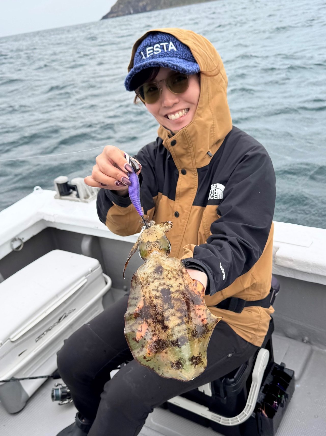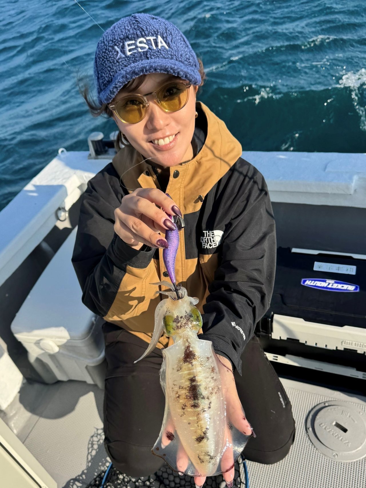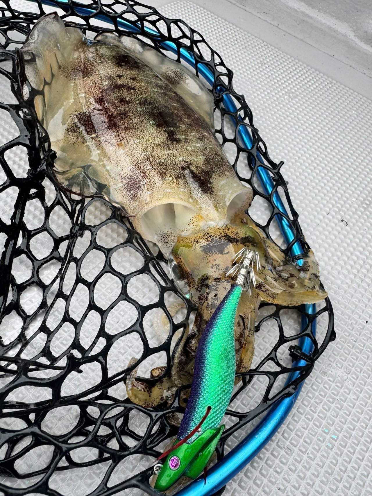 時化と水温低下でイカの活性が低くアタリも少ない状況でしたが、自分のお気に入りのエギで釣れたので満足です(*´з`)秋のアオリイカは身が柔らかくて甘くてとっても美味しいです(*^^*)