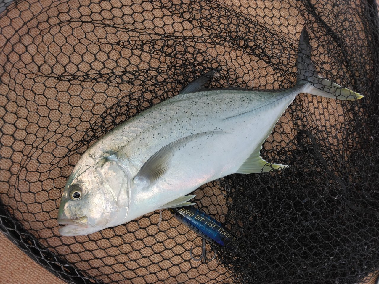 朝一は上げ潮狙いのポイントにエントリー。しかし朝マズメから反応なし。ベイトが少ないのか久し振りなので状況も分からないので上げ潮が効いているうちにエリアを大きく下見。小さいダツいるポイントを試してみるとやっとバイト。しかしサワラ?みたいなバイトでリーダーはザラザラに。その後も生命感があったので潮止まりまで粘るも反応なし。下げ潮狙いは沖で鳥が突っ込むのが確認できたポイントへ。下げ始めに鳥も近づいてきていい感じ。そしてバイトラッシュ!ヒラマサ、ヤズとキャッチするも時合は一瞬。その後は何時間か沈黙。しかし一度緩んだ下げ潮がもう一度走るタイミングにヒット!ヒラマサっぽい引きでしたが無念のフックオフ。その後はまた沈黙。潮が緩いタイミングにヒラスズキランガン。1本キャッチして終了。今回は強風の割にはベイトが岸によっていない様子でしたが、条件が揃えば更にいい釣果が見込めそうな雰囲気でした。