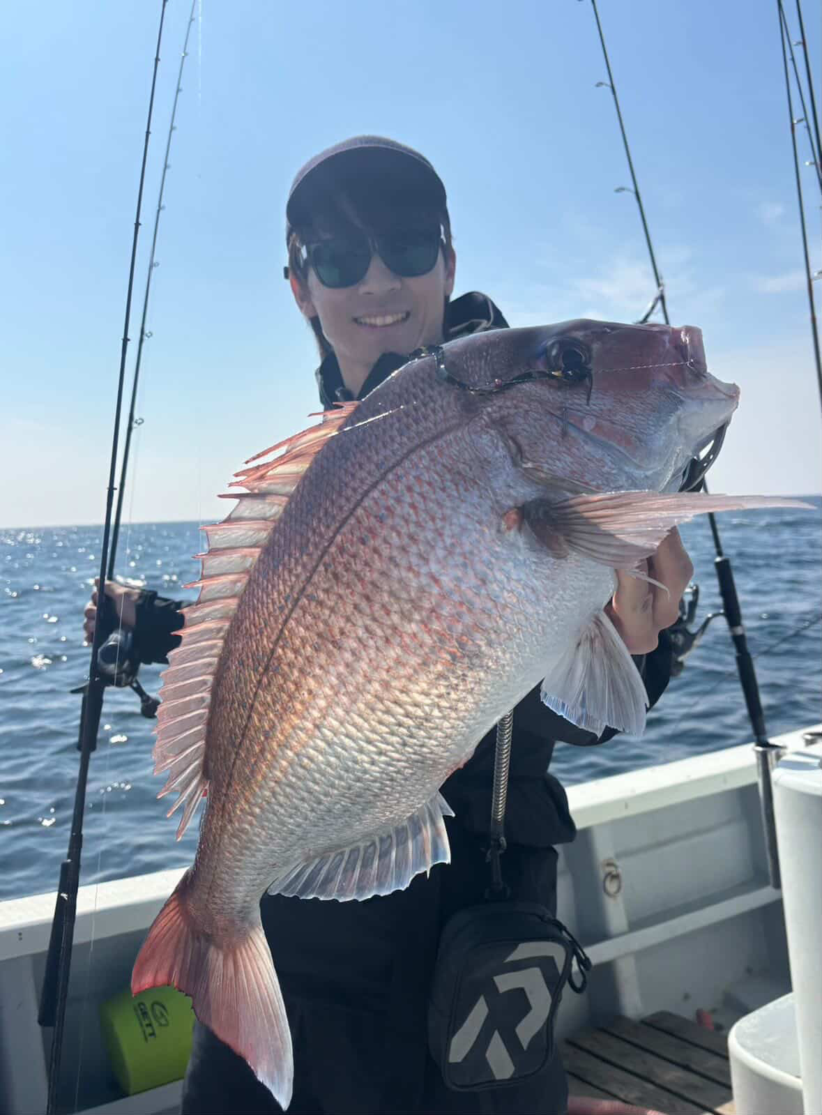 すると早速アタリ、55cmのマダイを釣ることが出来ました!!