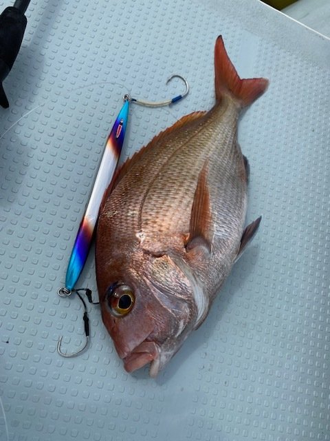 その後は潮替わりあとからポロポロ反応があるものの、水深150m以上でマダイが連発。