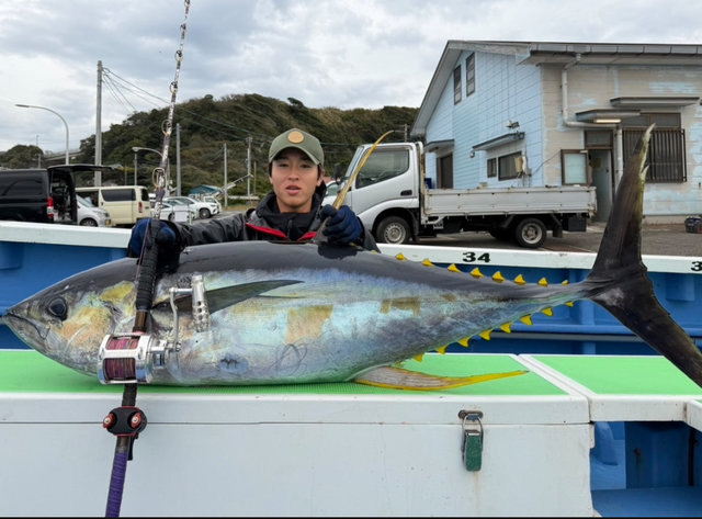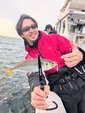 初期ドラグは体感で5kgぐらいに設定。40mぐらい走らせたら動きが止まったので手巻きスタンディングスタートし30分ぐらいでキャッチできちゃいました。同船された方々のフォローのお陰です!