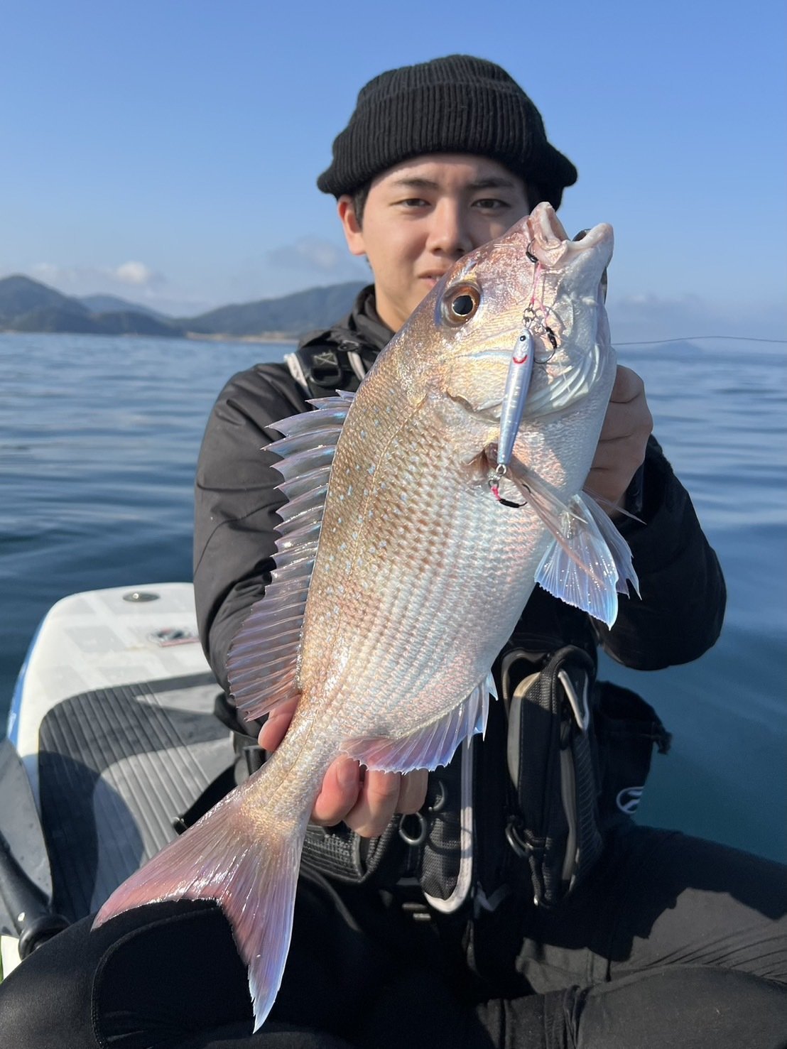 旬ののっこみタイラバ行ってきました!サワラと並行して狙っていたので、鯛のアタリ少なく…。船中1枚目はみんながタイラバ巻き巻きする中、大山さんがタイジグでヒット!これに惑わされず根気よくタイラバ継続。ここ数日はレンタルのビギナー様が炸裂!という情報が入っていたので、あえて重めのヘッドにチェンジして、巻き速度も遅すぎず早すぎない中速巻きに変更したところ…すぐにタイのアタリをとらえて1枚キャッチ!ネクタイは先日、渋い時間に1本だした『ピンクゼブラ』。この状況ならコレ!みたいな自分だけのセッティングがあると楽しいですね。(もちろんこれを裏切られるような結末も楽しいです。)船中もう1枚はなんと緑のネクタイ!超緑!あの人気アニメの羽織の様な緑×黒。これは緑のネクタイ購入確定です。(笑)行けば行くほど楽しくなるタイラバ!ぜひ皆様も春のタイラバ行ってみてください♪