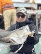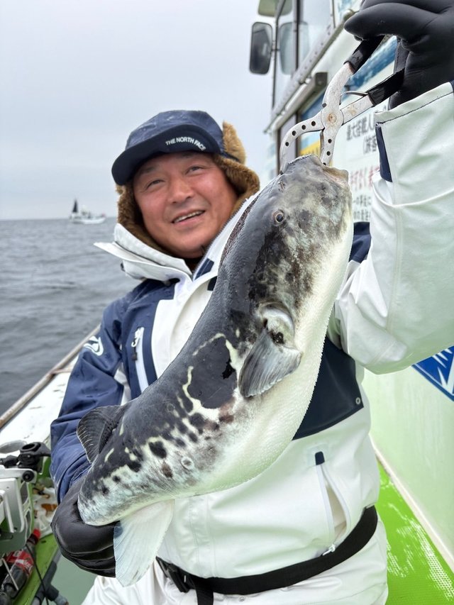 今期2度目のトラフグへ行ってきました。船宿はいつもお世話になっている金沢八景の忠彦丸さんです。ポイントは乗っ込みが始まった富浦沖水深80mです。最初の盛り上がりは10時ごろ右ミヨシの平槙君の1.3kgを皮切りに、左舷の2人も2.6kgと1.5kgをほぼ同時に釣り上げました。タモ入れしていた私の仕掛けを確認すると、餌が取られてるではありませんか!大切な時合を逃してしまいました(泣)雨もシトシト降り続け寒空の中船中アタリがないまま時間だけが経過してゆきます。正午を過ぎて雨が止み明るくなってきた頃、再びアタリが出始めました。底から3mを丁寧に探り誘い下げで着底したとき小さなアタリを逃さず、釣り上げたのは2.6キロの本命でした、沖上り10分前奇跡の坊主回避です。カットウは外し食わせ針でしたが、途中2度弱いアタリをフッキングさせることができず、乗っ込みではありますが今年は食いが浅い個体多く、カットウを付けるのは有効だと思います。