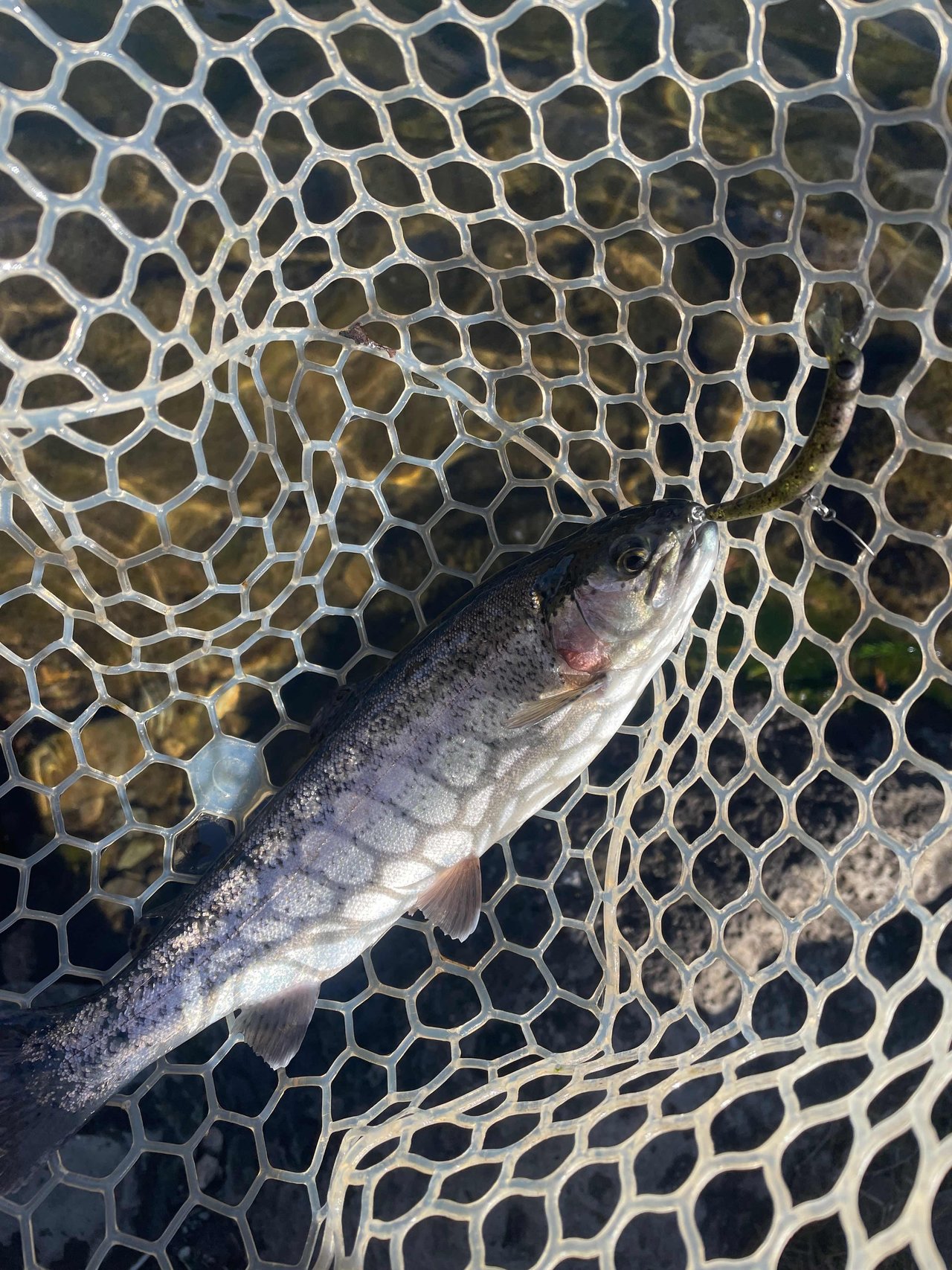 朝一から水が澄んでいたため、さかさにょろの茶色などを用いて早々2匹釣れました。