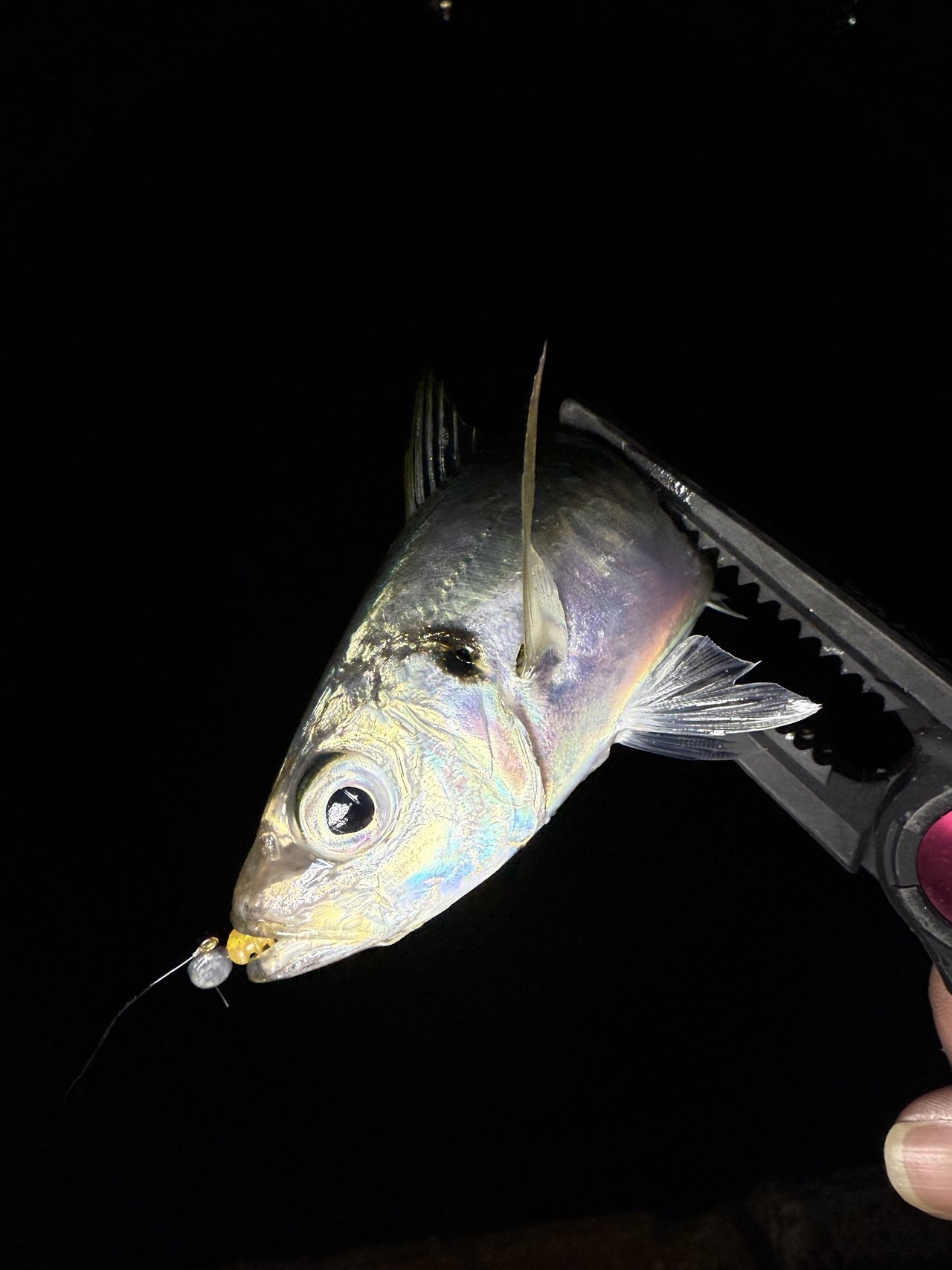しかしよく見ると,まさかのアジ!完全ラッキーでしたが何とか釣れひと安心。