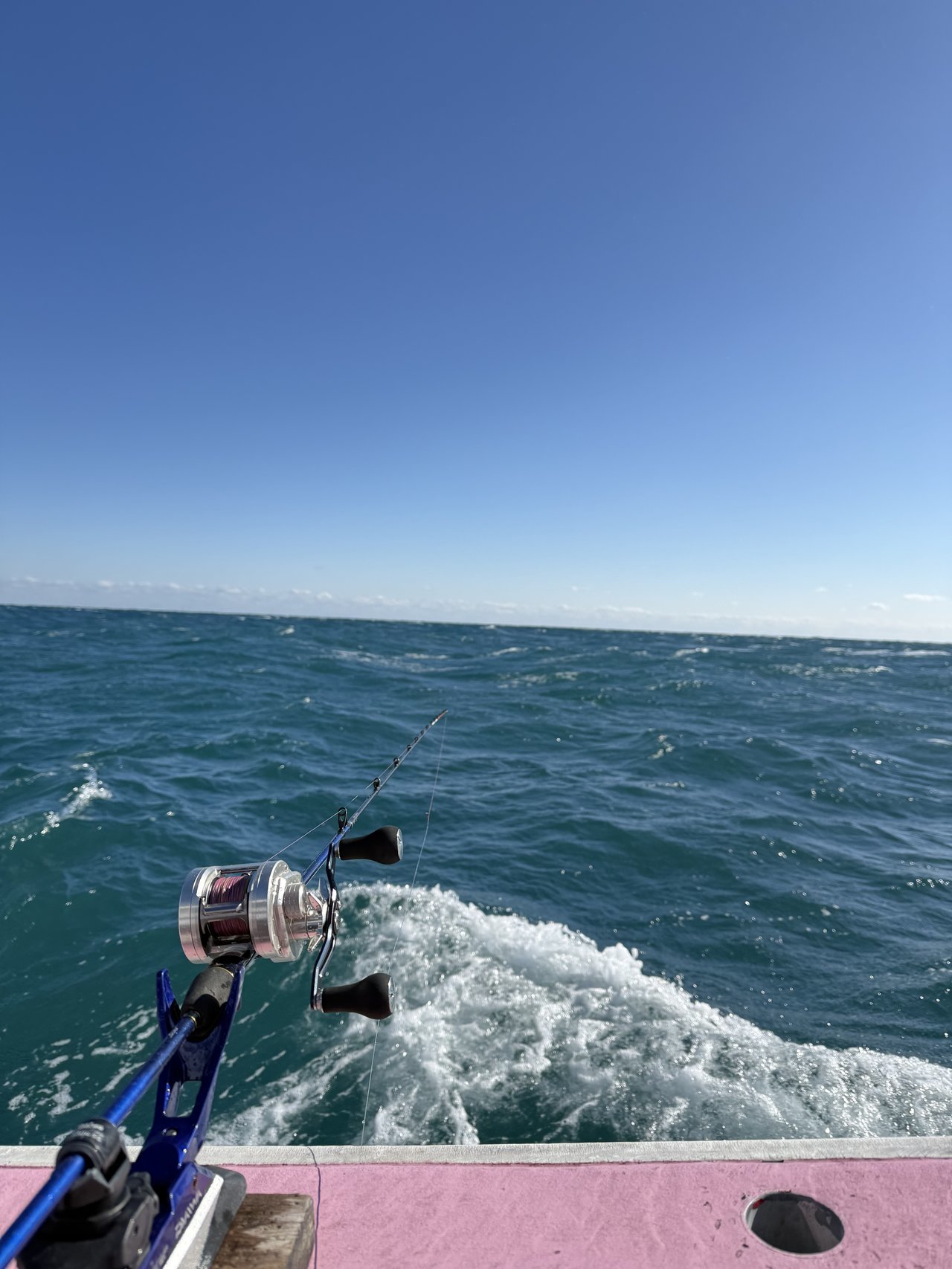 開始早々に隣でスタッフ藤巻が5.6kgのヒラメを4キャッチ、、、、船内ファーストフィッシュがその日最大のヒラメになりました。隣でやっていた自分のイワシを食べろよとか思いながアタリを待っていると、ググーーっと横に走るもの凄いアタリが!上がってきたのは「ブリ」みたいな!ワラサ!