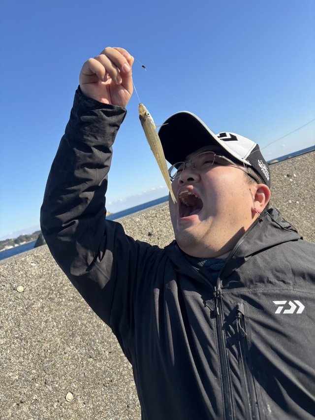 隣のキス釣り名人くんや駒岡の佐藤くんにアドバイスをもらいなんとかポツポツ釣れ始めます。ブルブルとあたりがあっても掛けられない事も多く、手返しも悪くなかなか数は伸びませんでしたが、みんなでワイワイ楽しい釣行となりました♪また凪の時にリベンジしたいです!