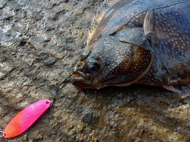 いろいろ投げて遊んでいたら日が陰ってきたら水面が騒がしくなってきたのでデカミッツドライ、カディスなどのトップウォーター系ルアーを投げたら大ハマりで楽しく釣ることが出来ました。